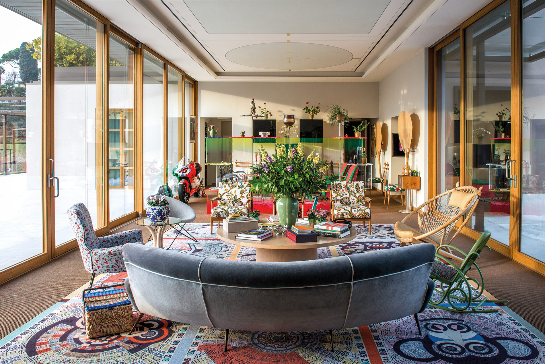 Το 2012 η Mαργκερίτα, που είναι το μεγαλύτερο μέλος της τρίτης γενιάς της οικογένειας, παντρεύτηκε τον Εουτζένιο Αμος, οδηγό αγώνων. Με το hashtag #VareseThePlaceToBe τόσο εκείνη όσο και ο σύζυγός της αποτυπώνουν την αγάπη τους για την πατρογονική γη, αφού σε αυτή την περιοχή το 1953 ο Οτάβιο και η Ροζίτα Μισόνι έβαλαν τον θεμέλιο λίθο της επιχείρησής τους, ενώ εκεί επίσης μεγάλωσε και ο Εουτζένιο. «Για το interior design δανείστηκα από τον οίκο Missoni την αισθητική των έντονων χρωμάτων και την εν γένει φιλοσοφία. Τα πάντα μαρτυρούν την ταύτισή μας με τη μόδα, αλλά και την αδυναμία μας στην τέχνη. Πολλά από τα έπιπλα τα παρήγγειλα διαδικτυακά, ενώ για τους πίνακες και τις τοιχογραφίες απευθύνθηκα σε Ιταλούς καλλιτέχνες. Η τοιχογραφία, για παράδειγμα, που απεικονίζει κήπους στους τοίχους και την οροφή της τραπεζαρίας δημιουργήθηκε από το Pictalab, μια δημιουργική ομάδα με έδρα το Μιλάνο. Ομολογώ ότι, παρόλο που σχεδιάζω πράγματα και για το σπίτι, το interior με κούρασε καθώς η ολοκλήρωση του σπιτιού κράτησε γύρω στα πέντε χρόνια».